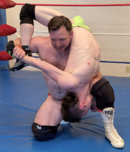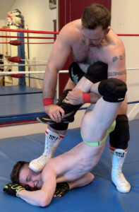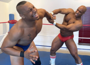 Mickey Knoxx and Jonny have wrestled before but never in a ring. Jonny’s confident that the location won’t make a difference, Mickey’s still a jobber and he’s still the baddest heel in the game today. Mickey has a little spunk today, he manages to take the fight to Jonny who is surprised that he’s on defense. Mickey’s time on top doesn’t last long, Jonny finds himself in the driver’s seat pretty quickly. Mickey keeps fighting back though! Eventually Jonny has enough and goes full on heel mode. Ball bashing, a piledriver and skull smashing elbows all spell doom for Mickey. Before finishing him off Jonny takes a bite of Mickey’s cakes, a dessert he’s sure to enjoy more of later!