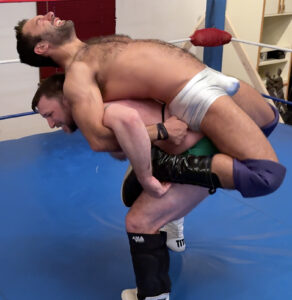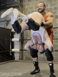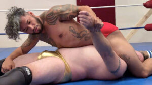 Tanner shows up hoping Jonny can teach him a thing or two about being a heel. Jonny agrees and lets him take his best shot. As is often the case, Tanner’s best just isn’t enough to keep the heel down. If it’s heel training he wants, hopefully he can learn through osmosis because he gets absolutely thrashed. Jonny twists Tanner up like a pretzel in ways only he can. The sweat pours down each man’s body, Tanner’s gear gets stripped off down to a thong and tombstoned. Domination lovers, this one is a must have.