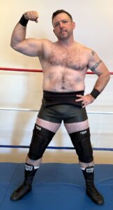 I didn’t realize it till I got into the ring, but Gabe was regretting a few things already. Live shows are challenging. Something always goes wrong, and that night was no different. When I got close enough to the ring to see his face, I noticed Gabe had a nice little lump on his eye that was starting to swell. I was assessing the situation during as I was entering the ring. I decided that kicking him in the nuts was the way to go. That way I’d have a chance to look at it closer and check in with him. I wanted to heel Gabe, but not put him in any real danger. After checking on him he said “I’m good, the show must go on, fuck that” (about stopping the match early). So I proceeded with his ass kicking. I was getting a little nervous looking at his eye swell up more and more as time went on, so I brought him to a corner to rub my crotch in his face. Not just because it’s fun, but so I could get a closer look at his eye without pausing the action. The swelling was much worse, he was still down to keep going, but it was obvious that I just needed to get through this as quickly and safely as possible. The crowd still seemed to be into the match, but it was hard not to be a little disappointed with how things went.